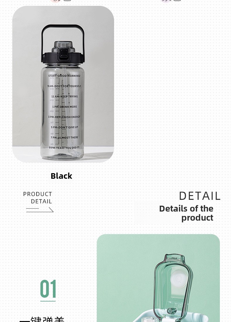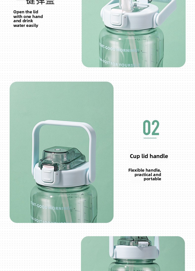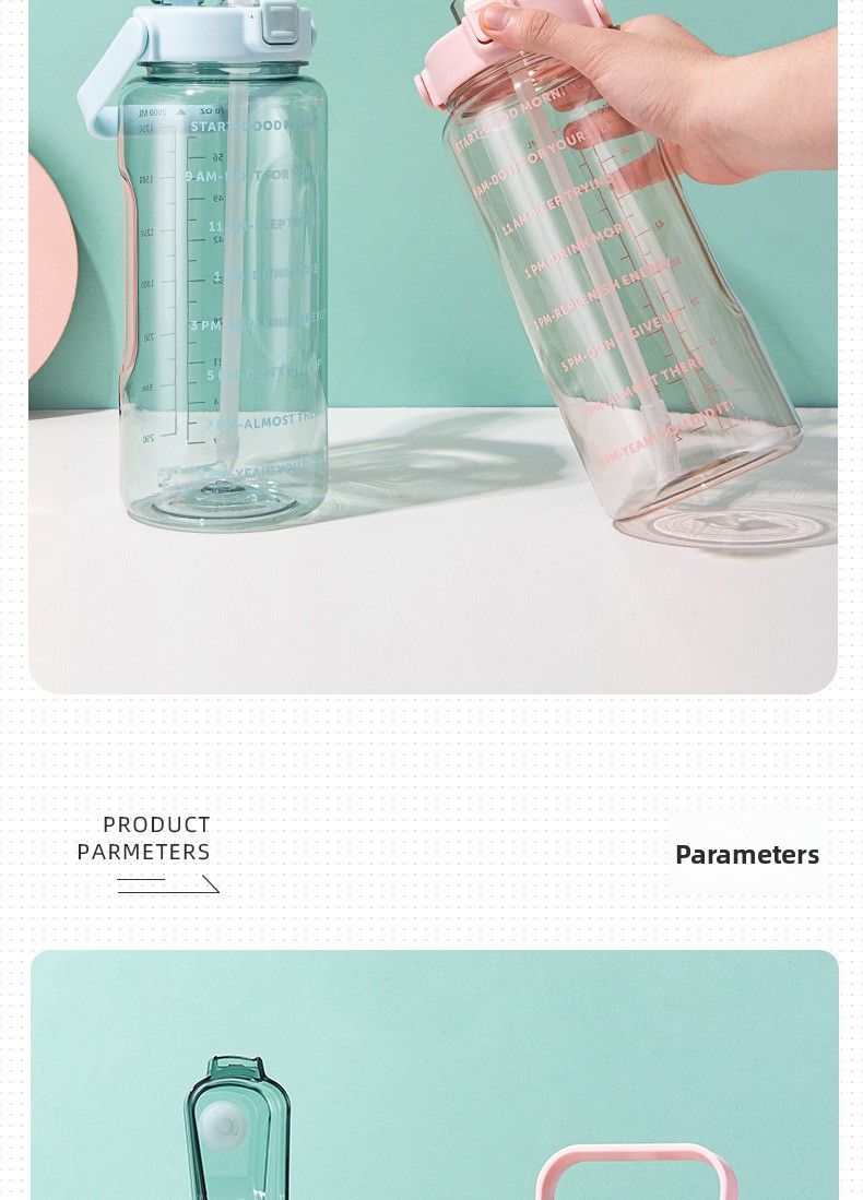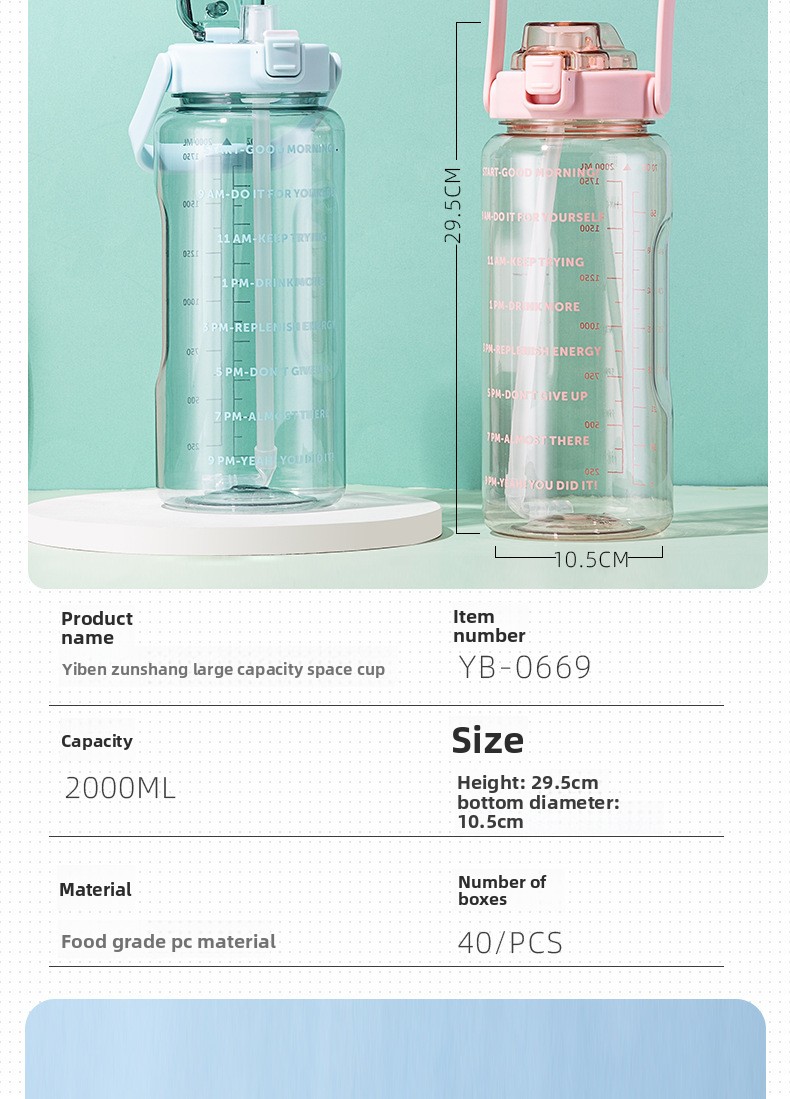 Large capacity: 2000ml volume for ample hydration during activities